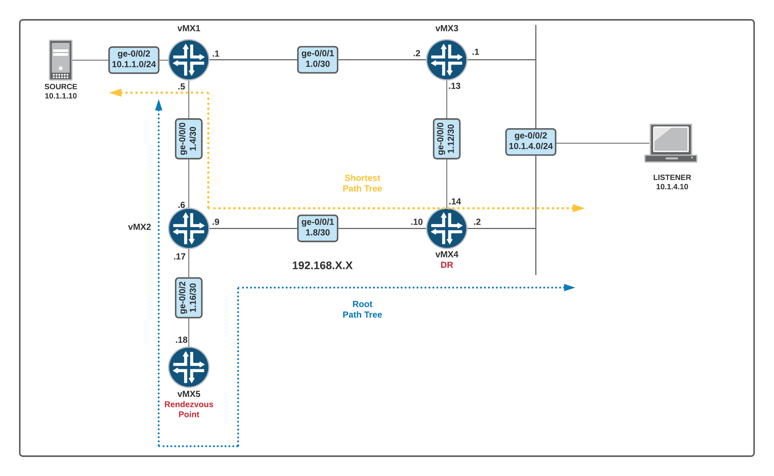 - (*,G) Tree (RPT) - vMX5 > vMX2 > vMX4