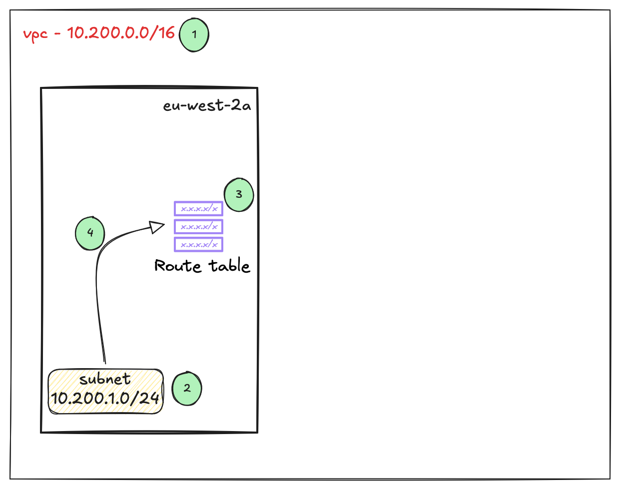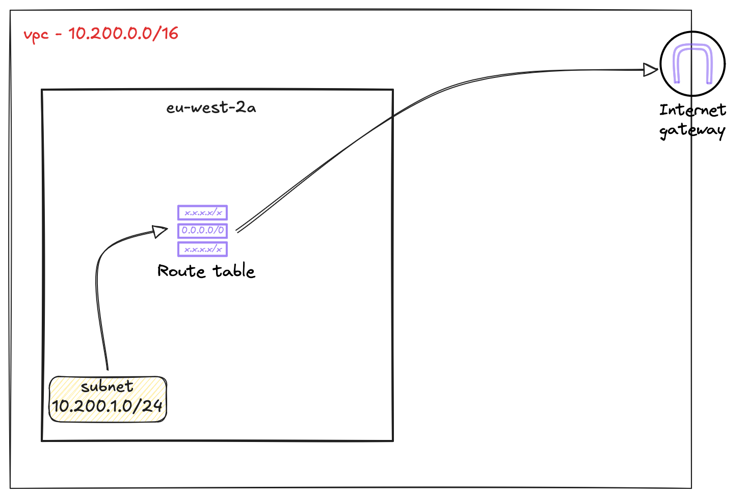 Let's have a quick recap. So far, we have created a VPC, a subnet inside it, and a custom route table. We then associated our subnet with this route table.