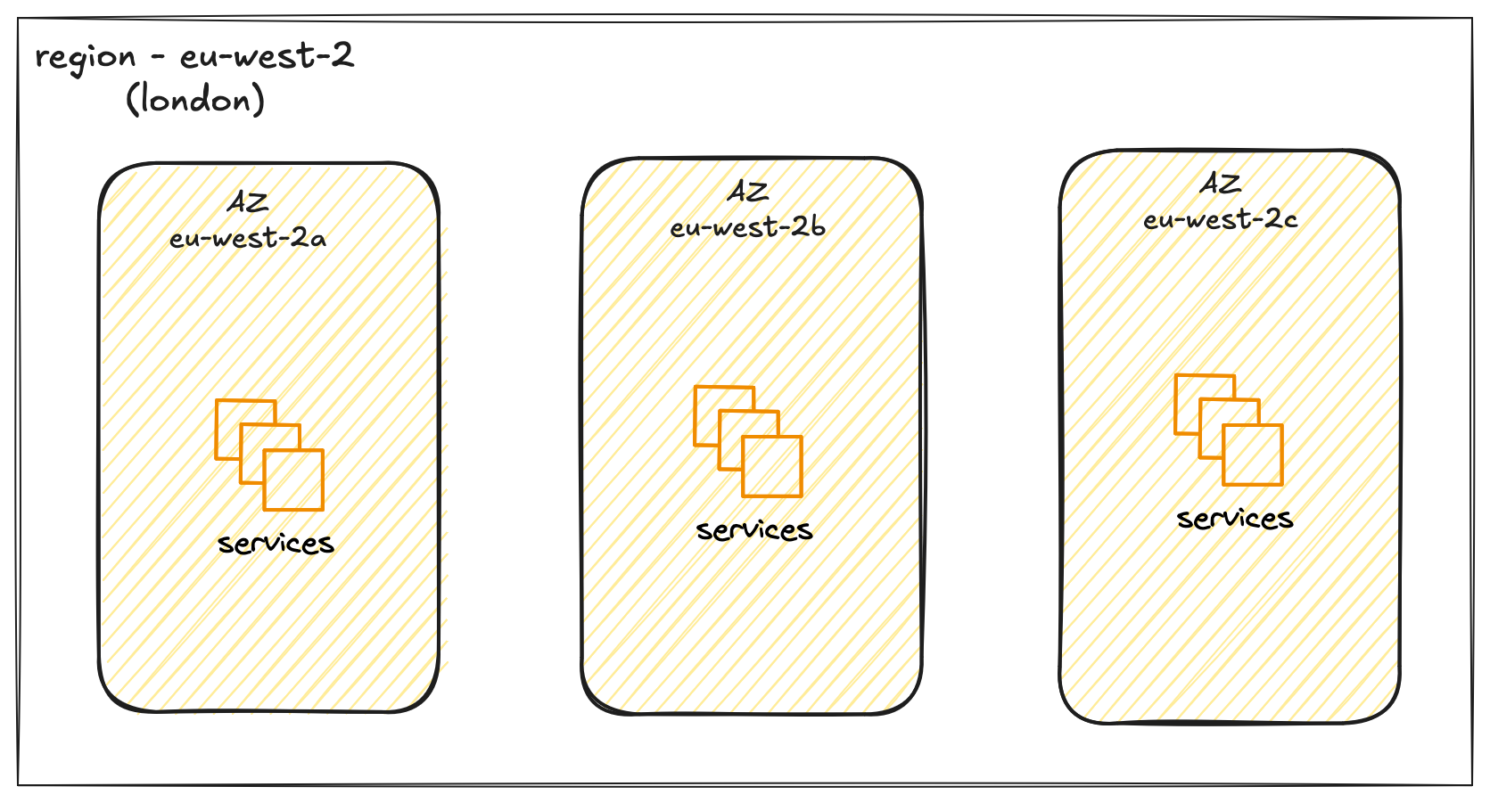 Now, let's zoom in a little closer on a Region. To ensure that applications are highly available and can withstand failures, AWS doesn't just have a single data centre in each Region. Instead, each Region is made up of multiple, isolated locations called Availability Zones, or AZs for short. You can think of an AZ as a distinct data centre facility within a Region.