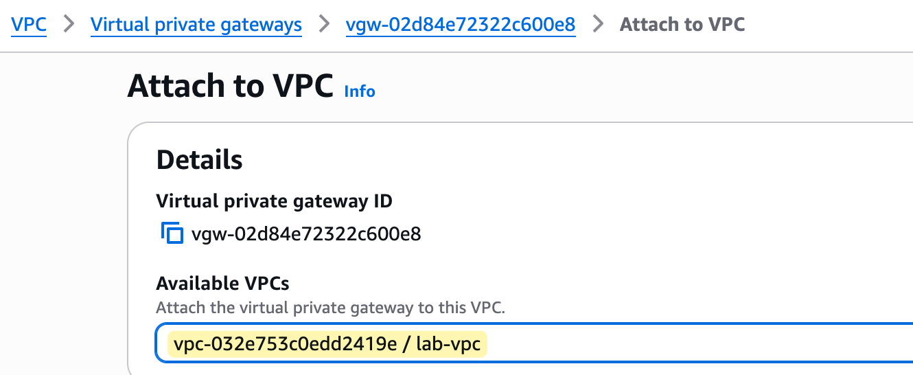 Creating the Virtual Private Gateway (VGW)