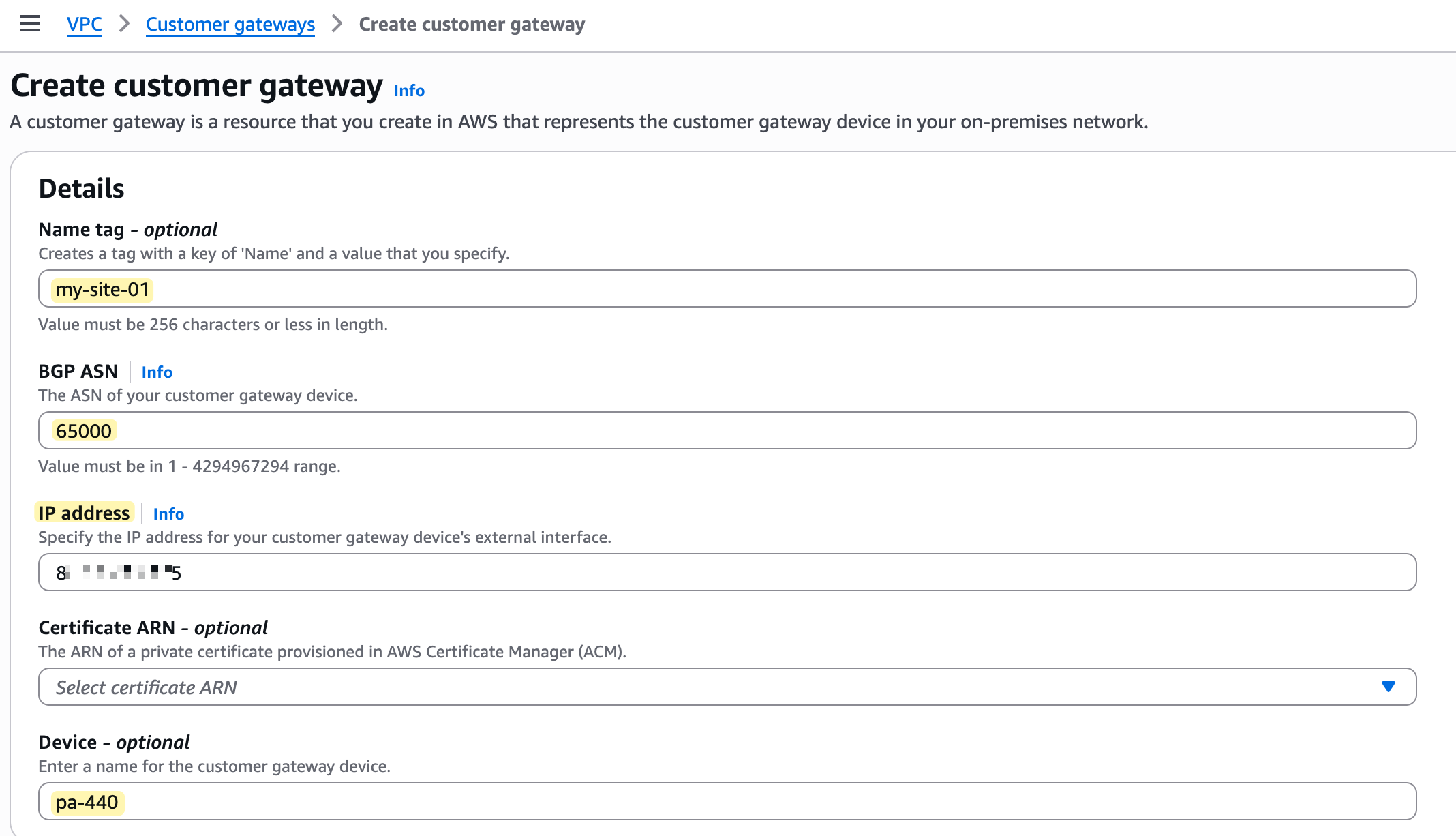 Creating the Customer Gateway