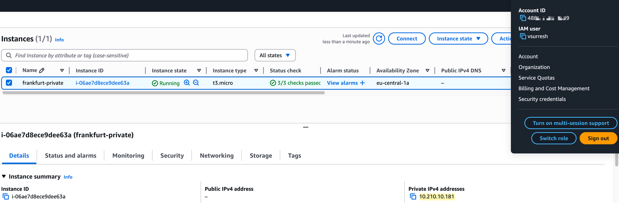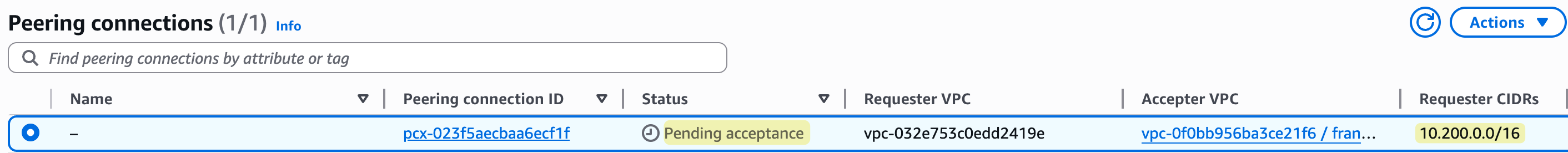 The owner of the second account must then log in to their account in the Frankfurt region to find and accept the pending peering request.