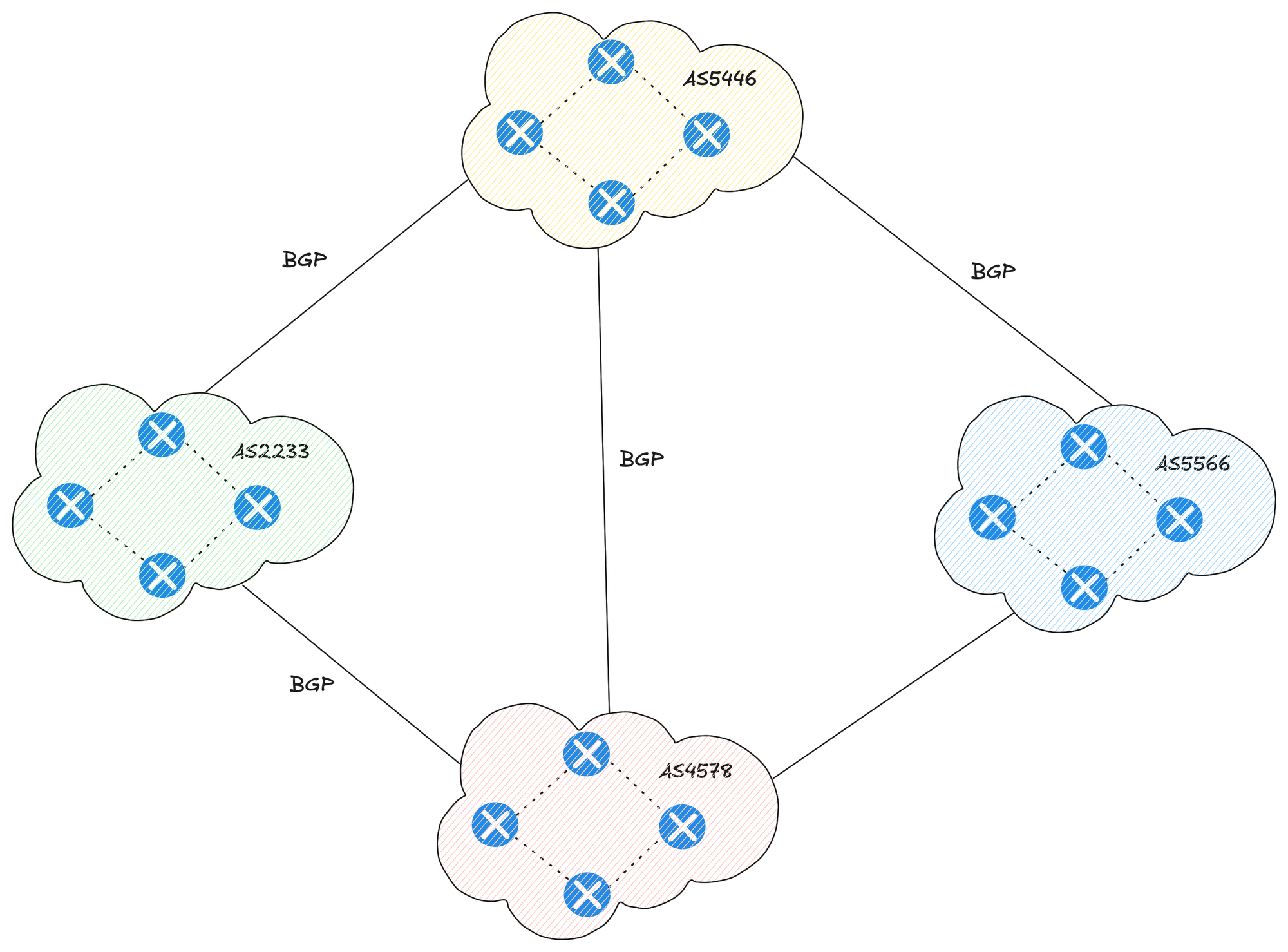 The Border Gateway Protocol (BGP) is the routing protocol used to exchange routing information between autonomous systems (AS). An autonomous system is simply a group of routers that work under the same administrative control, and BGP is the protocol that allows these systems to share routing information with each other. In simple terms, BGP looks at the Internet as a large collection of autonomous systems.