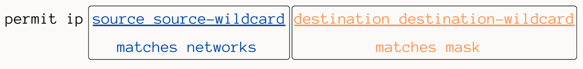- Extended ACL - Common, matches network and mask, flexible enough