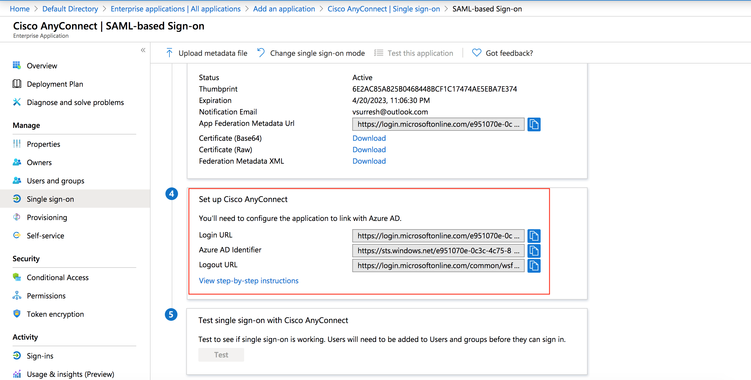 On the Set up Cisco AnyConnect section, copy all three URLs.