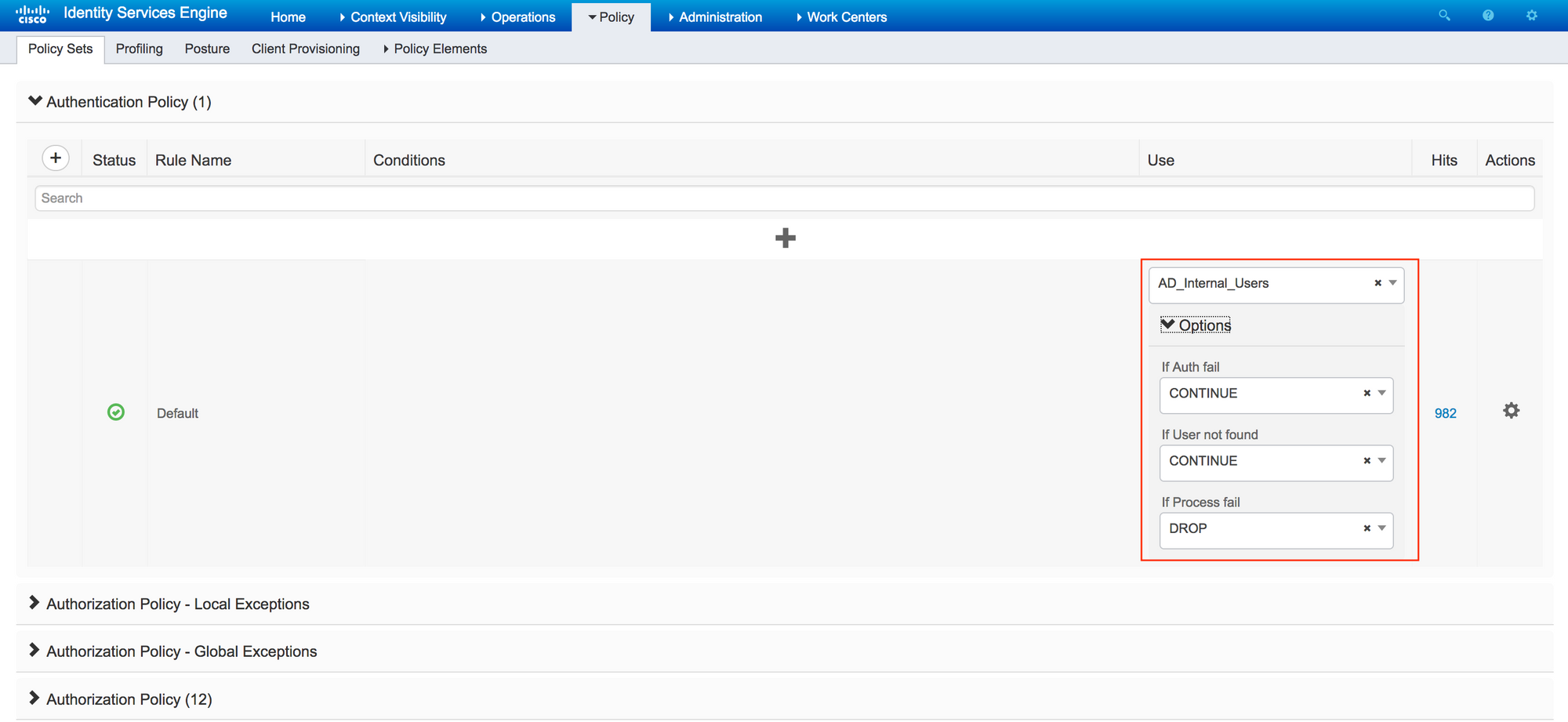 To get around the issue we need to set the ISE authentication source to Internal Users, and told ISE to continue on both Auth fail and user not found. This allows ISE to process just authorization.