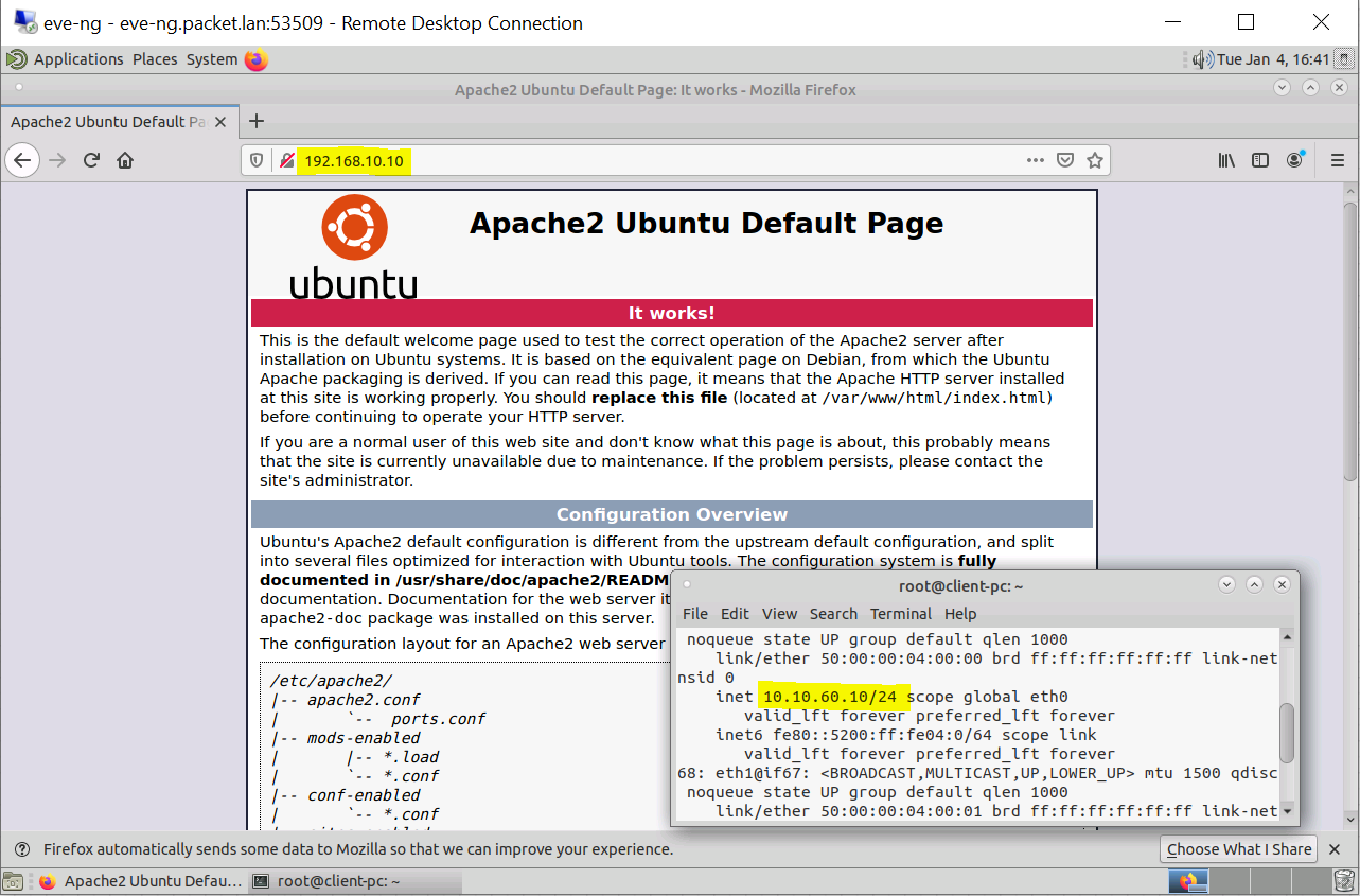Our ultimate goal here is to set up a site-to-site VPN between the Branch Office and the Headquarters. Let's assume the client-pc (10.10.60.10) in the branch office needs to access a web server (192.168.10.10) in the headquarters.