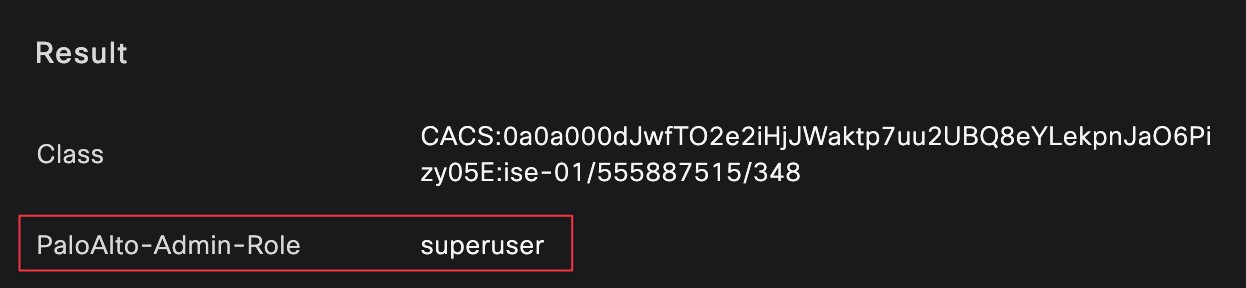 If the credentials are valid, ISE then looks at the user’s identity group and evaluates the authorization policy. Based on this, ISE responds with an Access-Accept message and includes vendor-specific attributes that tell the firewall which Admin Role to apply to the user.
