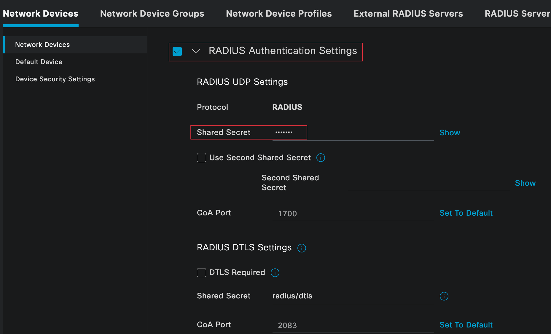 Next, select the tick next to the Radius Authentication Settings and enter the Radius shared secret, ensuring it matches on both sides.