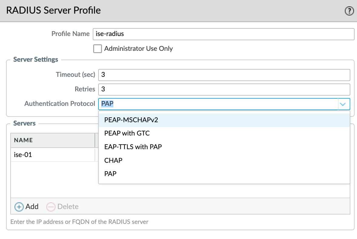 When we created the Radius server profile earlier, we selected PAP as the authentication protocol. Password Authentication Protocol (PAP) is one of the simplest authentication methods for Radius, but it transmits credentials with minimal protection. While Radius encrypts the password attribute, PAP's basic design makes it vulnerable to packet sniffing and man-in-the-middle attacks, especially if the Radius shared secret is leaked.