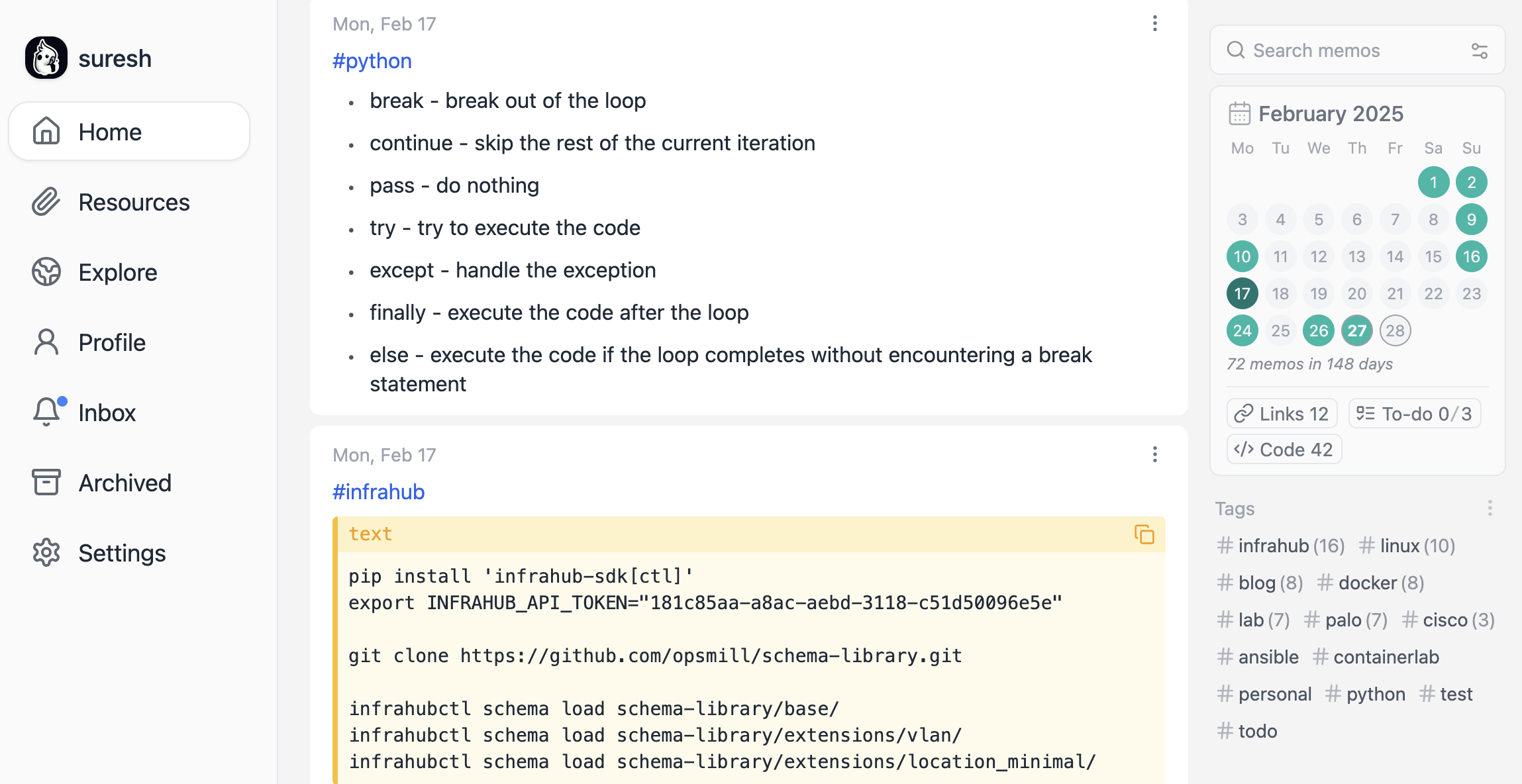 Once it’s up and running, you can access memos by opening http://<your-ip-address>:5230 in your browser. And that’s it - you now have a very nice note-taking app installed with just one command.