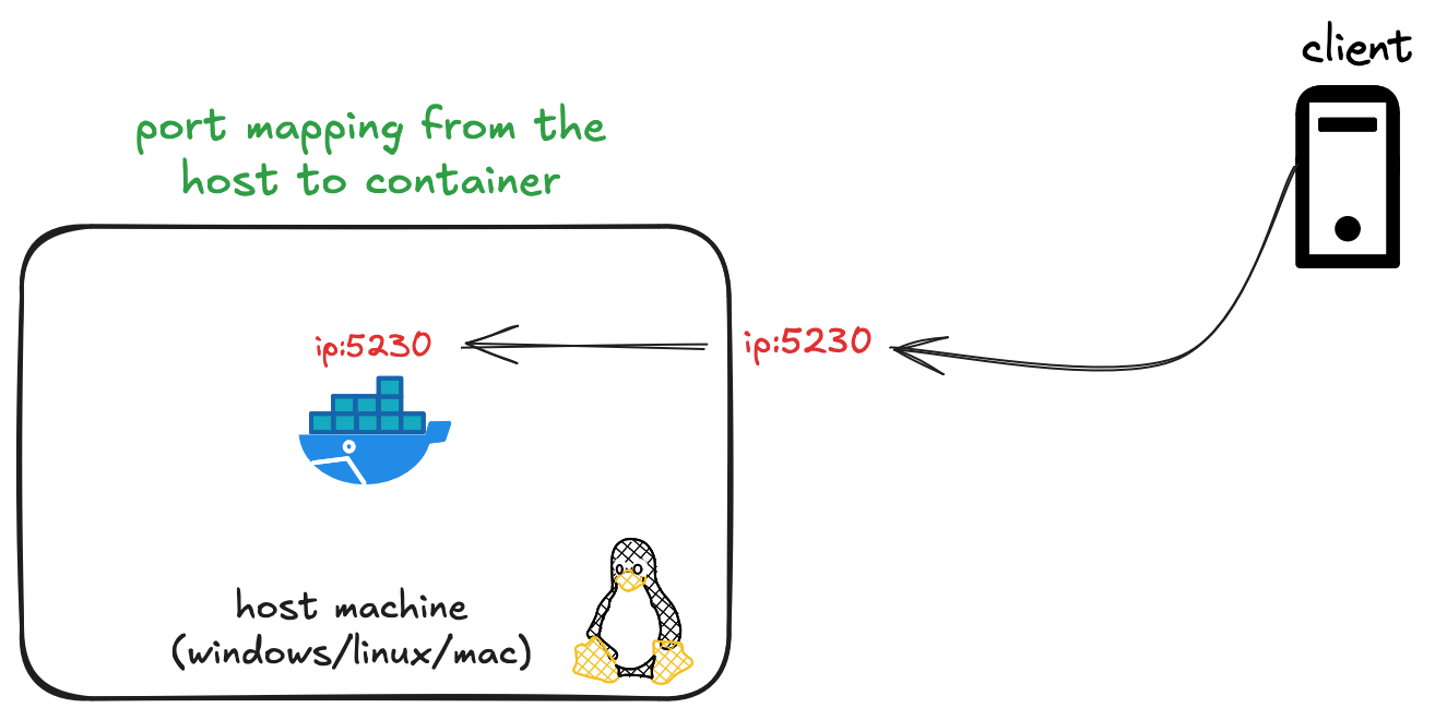 We will go into Docker Networking in more detail later, but for now, as a client, you just need to connect to the host's IP and the port we exposed. The host will then forward the traffic to the container, which has its own internal IP. With Docker's default networking mode (bridge), you cannot directly reach the container's real IP from outside the host. We’ll explain why this happens and how to work around it in a future post.