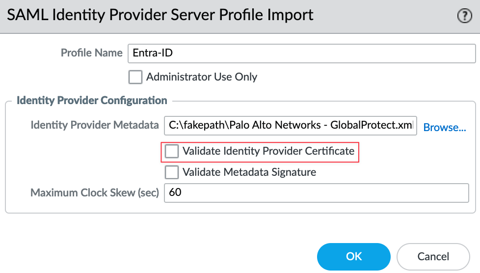 This vulnerability was patched shortly after it was identified, but it is something to keep in mind when using SAML. If you decide to validate server certificates, you need to use your own PKI. By default, Entra uses a self-signed certificate. When you imported the SAML metadata, the self-signed certificate was also imported to the firewall. However, this certificate is not a CA certificate, and in order to validate it, you need to import the CA that issued the certificate.