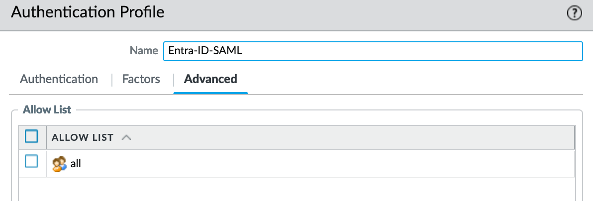 Under the Advanced tab, I'm going with 'all' since access is already controlled by Entra-ID.