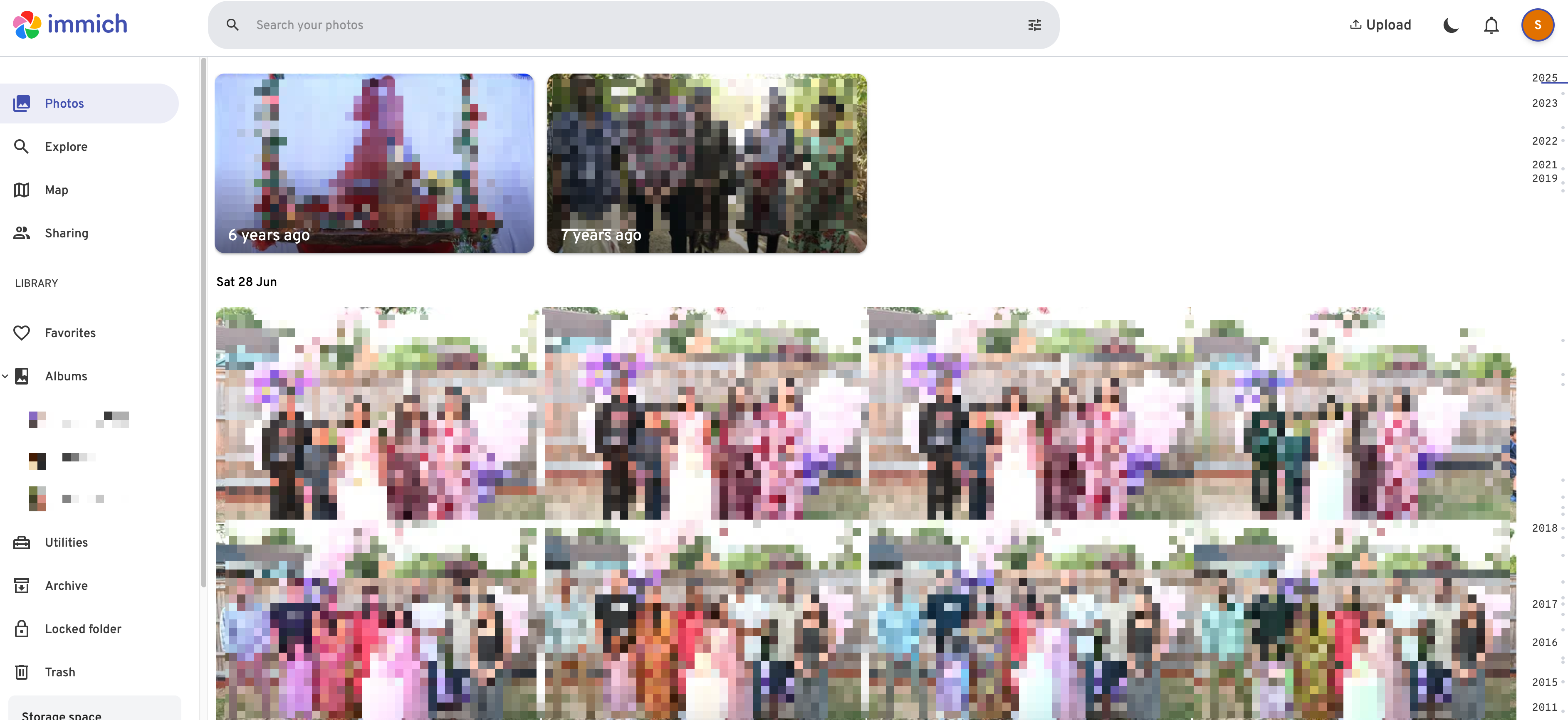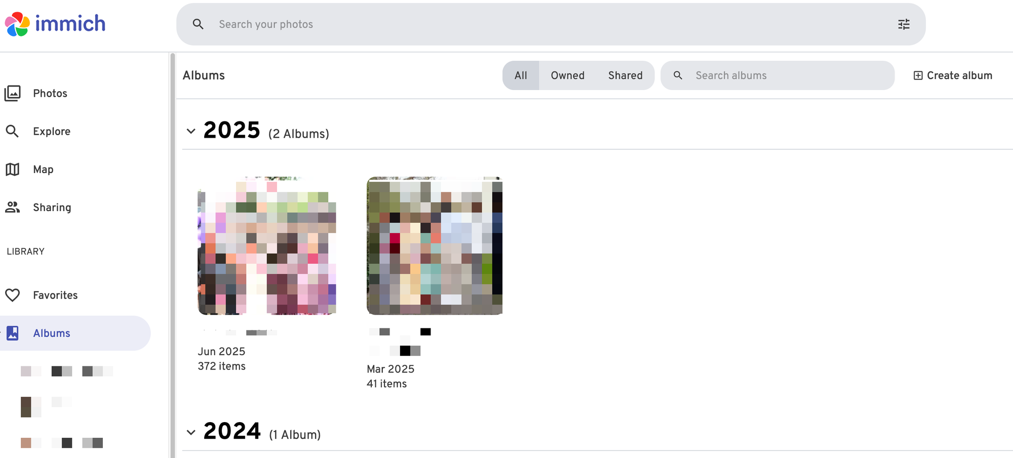 I created a few albums straight away, and Immich also does face recognition. It took a while for the initial scan to complete, but after that all I had to do was add new images to the NAS and Immich automatically picks them up, organises them by date, and lets me add them to albums.
