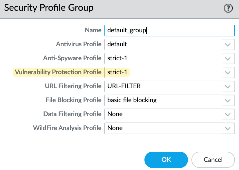 You then need to attach this security profile to all of the security policies that use App-IDs. Here in my example, I use a Security Profile Group and referenced this profile there. I then attached this profile group to all of my security rules.