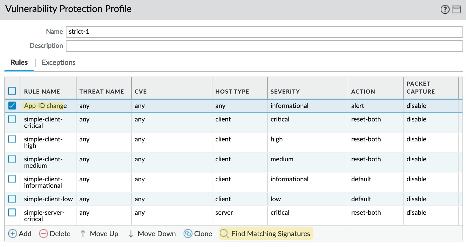 If you click on 'Find Matching Signatures', it will list the upcoming App-ID changes.