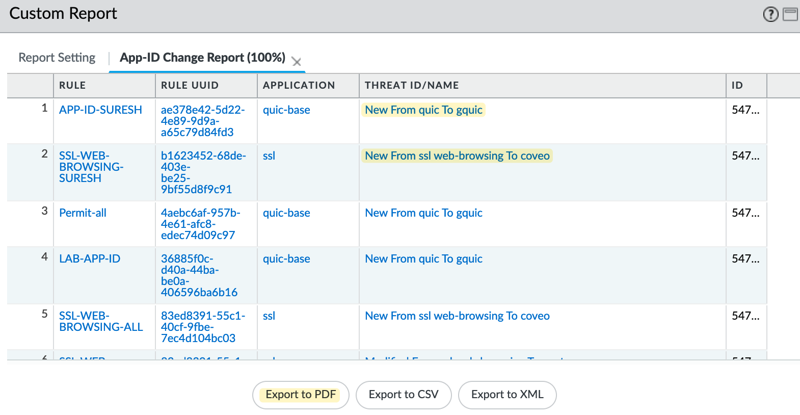 This means that, after you enable these TSIDs in your Vulnerability Protection profiles, you will see Threat Log events associated with any planned App-ID changes that will impact your network.