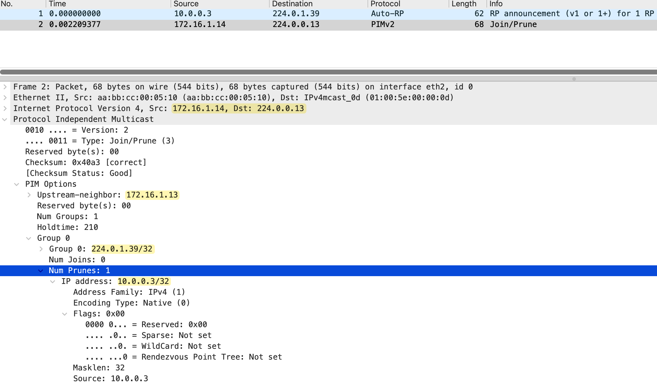 PIM(0)[default]: Prune-list: (10.0.0.3/32, 224.0.1.39)