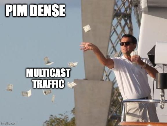 PIM Dense Mode is not commonly used in production environments. It is mainly used for labbing and testing purposes. The reason is that Dense Mode uses a flood and prune approach. It assumes that every subnet in the network has interested receivers, so it floods multicast traffic everywhere first. Routers that do not have interested receivers then send prune messages to stop the traffic. This behaviour is inefficient and wastes bandwidth, especially in large networks where most subnets may not have any receivers at all.