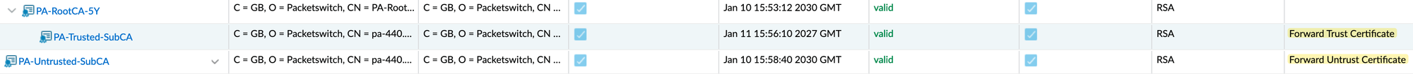In many enterprises, there's a Public Key Infrastructure (PKI) that manages these certificates. The firewall needs a certificate signed by this private PKI, which needs to be a subordinate CA. This allows the firewall to create and sign certificates. the client devices also need to trust the root CA.