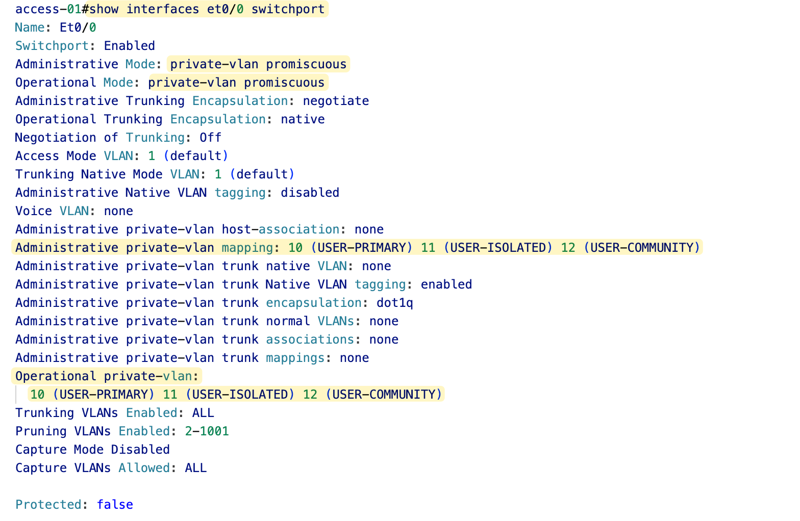 Just to recap, our primary VLAN is 10, isolated VLAN is 11, and community VLAN is 12. Think of the secondary VLANs as sub-VLANs within the primary VLAN 10.