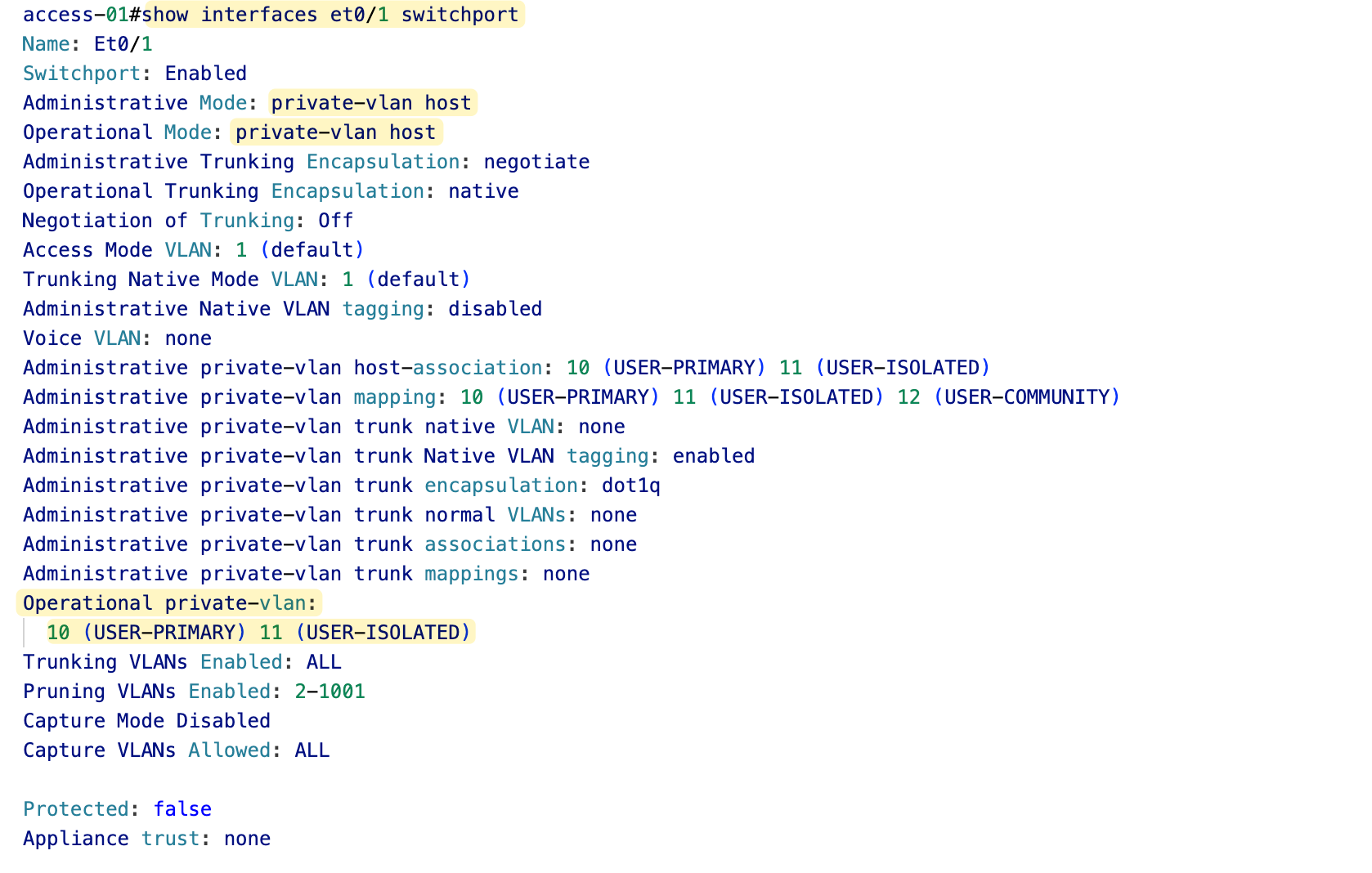 - VLAN 11 as 'isolated'