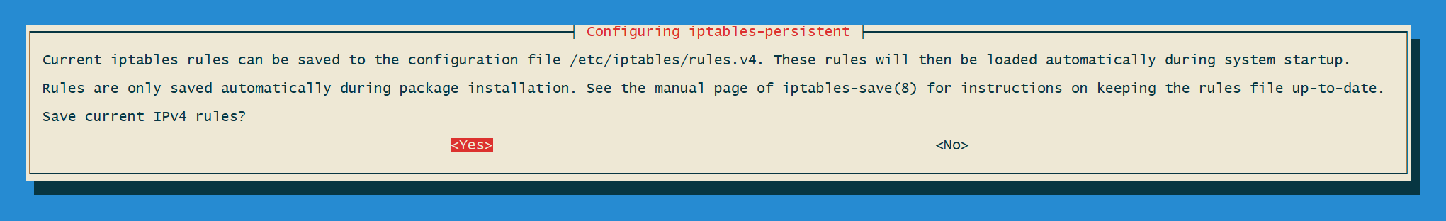 pi@raspberrypi:~ $ sudo apt-get install iptables-persistent