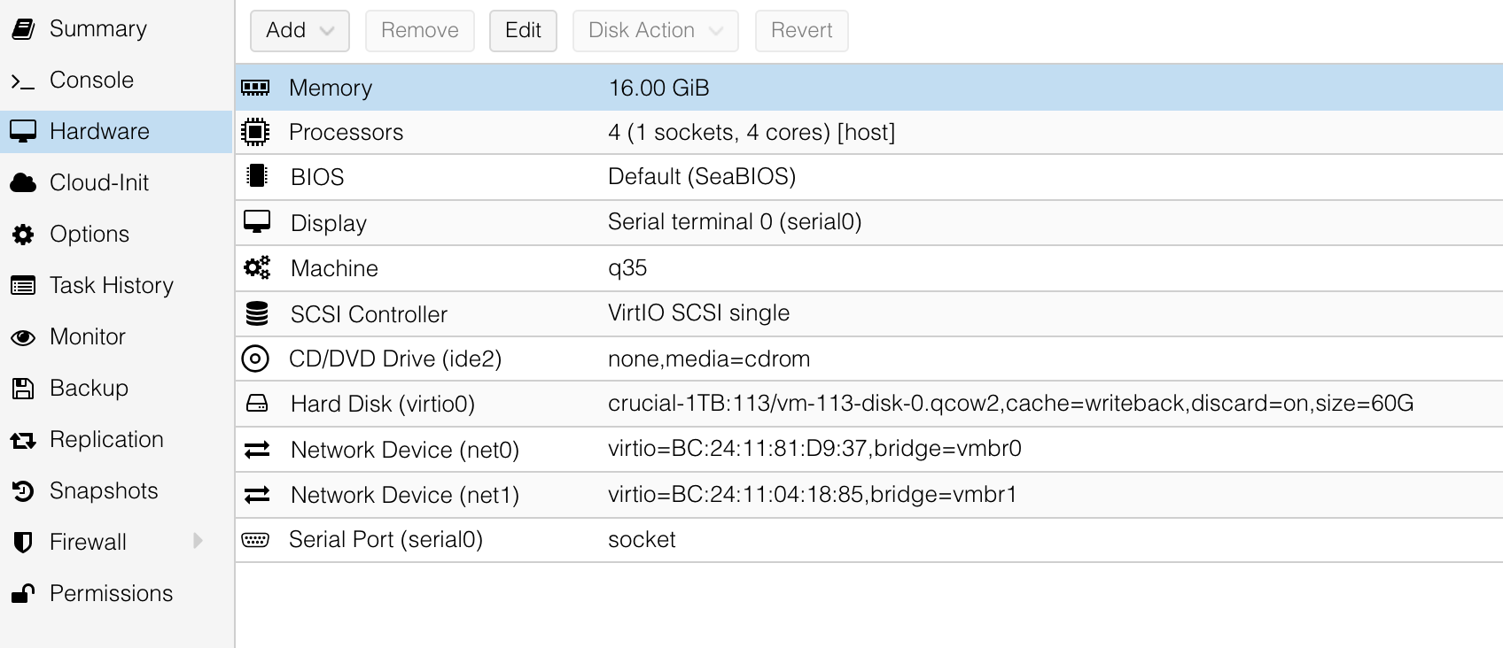 qm set 113 --virtio0 crucial-1TB:113/vm-113-disk-0.qcow2,discard=on,cache=writebackThis command tells Proxmox to use the imported QCOW file as a VirtIO disk for VM ID 113. With these, the VM now has the Palo Alto disk properly attached and ready to boot.