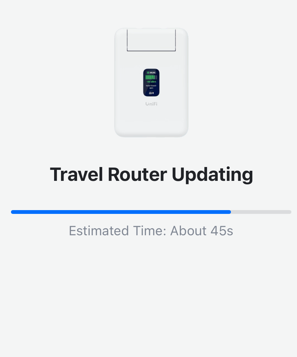 Setting up the UTR was straightforward. I powered it on via USB-C, and it takes about 1 to 2 minutes to boot up. Once it's up, it shows up in the UniFi app on my phone. From there, you select an uplink, which can be a mobile hotspot, an existing SSID (even behind a captive portal), or the WAN port. Once it connects to the Internet, you update the firmware if needed, and then it prompts you to associate it with a gateway. Since I don't have one, I selected manual configuration and created an SSID with a password.