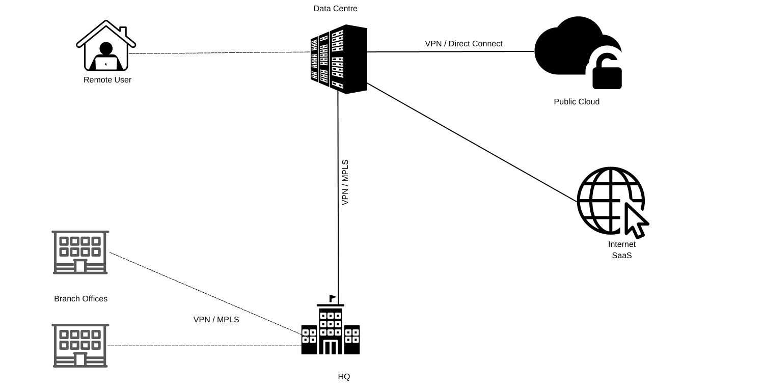 Before diving into what SASE is, let's look at the current Network Architecture and its challenges.